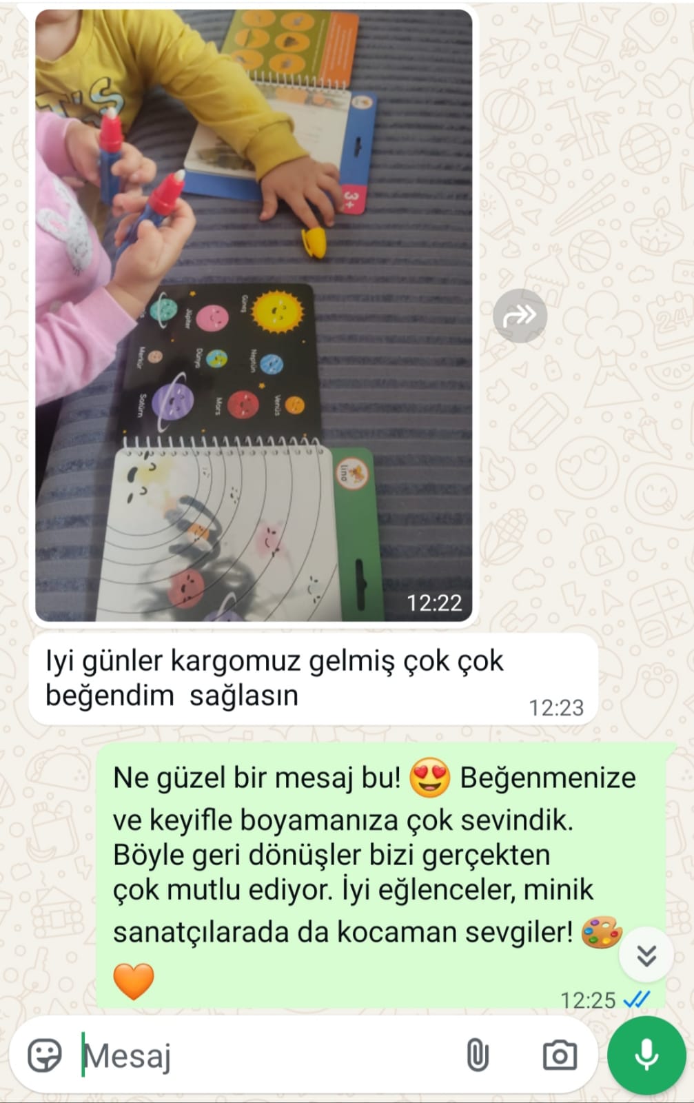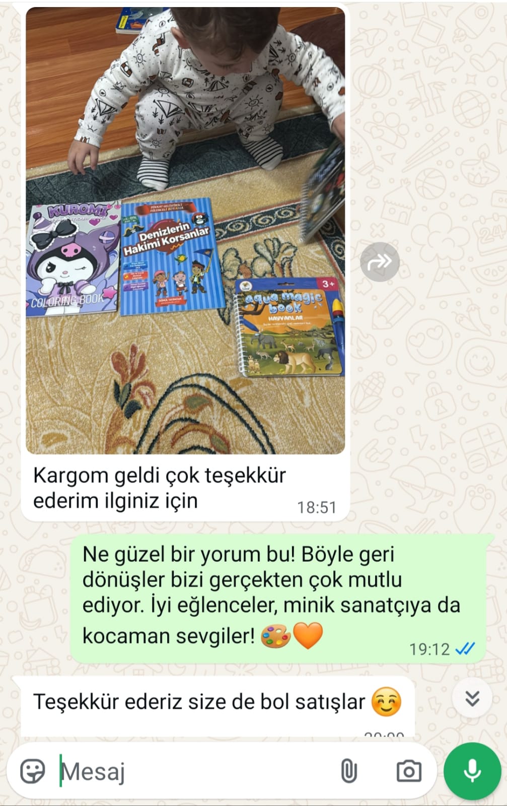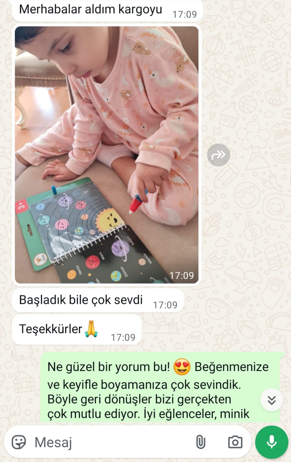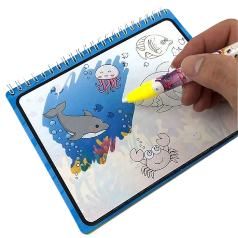 Sihirli Boyama Setimiz ile sayfa üzerinde suyun temas ettiği her yer renklenir. Bu sayede çocuklarınız hem eğlenir hem de motor becerileri gelişir. Tüm bunlara ek olarak çocuklarınız artık halılarınızı ve duvarları boyamaz!